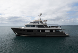 The 38.7m./127' expedition yacht RH THREE, built by RMK Marine, is now available for luxury yacht rentals with Yacht Hunter. She accommodates up to ten guests in five luxurious cabins. Designed by the renowned Dutch firm Vripack, her interiors combine style with functionality.