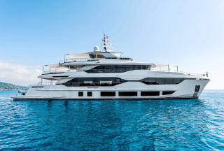SERENITY, a 40.4m./132'7" motor yacht built by IAG Yachts and designed by Evan K. Marshall, is now available for luxury yacht rental with Yacht Hunter. Accommodating up to 12 guests in six cabins, she is perfect for relaxation or adventure. SERENITY offers spacious lounges, a beach club, and underwater lights, creating an enchanting yacht charter vacation.